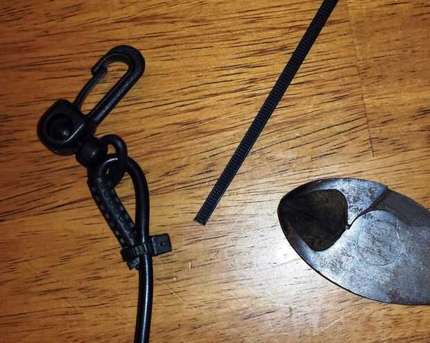 Utilice una amarra plástica de tamaño apropiado para unir el lazo en cada extremo. Puede que necesite colocar tu dispositivo en el cable antes de cerrar el bucle, como lo hice con uno de mis. Utilizar pinzas para asegurarse de que el cordón es buena y apretada. Corte el exceso de la amarra con los alicates diagonales. A veces esto deja un punto agudo o dos, archivos así que si sientes que es necesario.