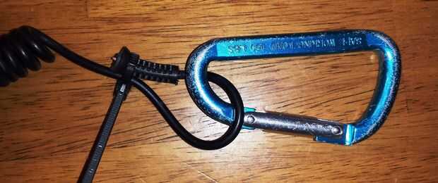Utilizar dispositivos de sujeción adecuados para su aplicación. Tuve un giratorio plástico encajen en una vieja correa de la cámara que usé para uno de los extremos, que se unirá a un ojo de la almohadilla o a otro punto en el kayak. En el otro puse un viejo mosquetón, que se unen al carrete pesca.