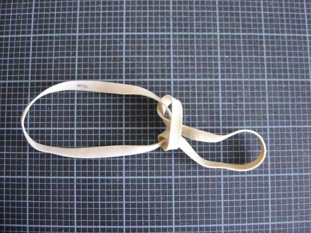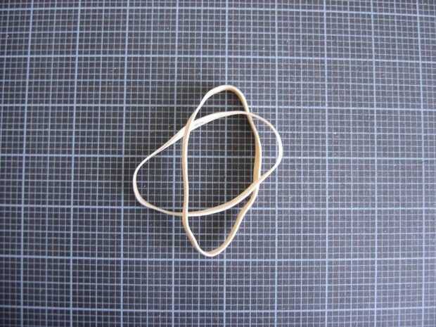 Ahora encadenar las gomas. Para ello, pegar una banda de goma dentro del otro y llegar a través de aquél, agarra la otra y páselo a través. Basta con mirar las fotos.