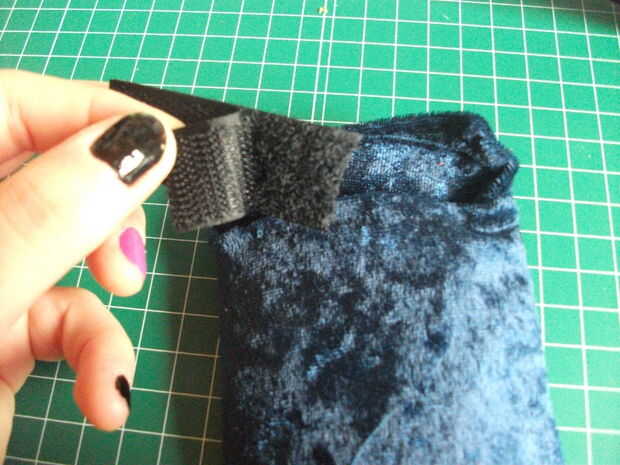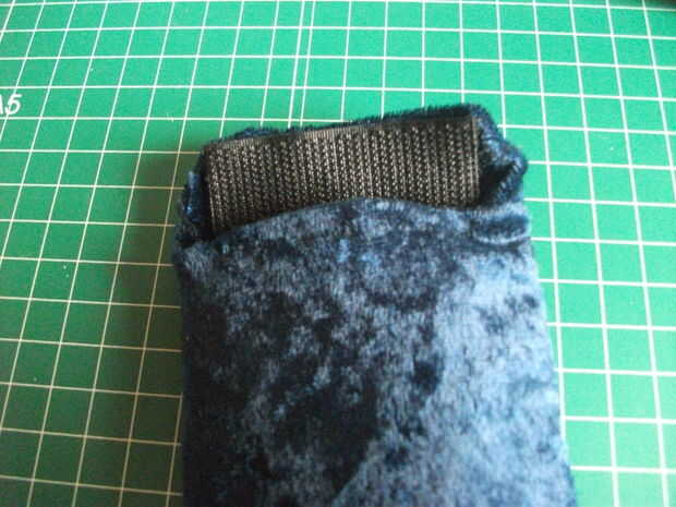 Ahora la parte más difícil: coser el velcro. Debido a la rigidez de la tela impermeable, yo no pude coser con la máquina de coser; Lo hice a mano, así que... USE UN DEDAL!