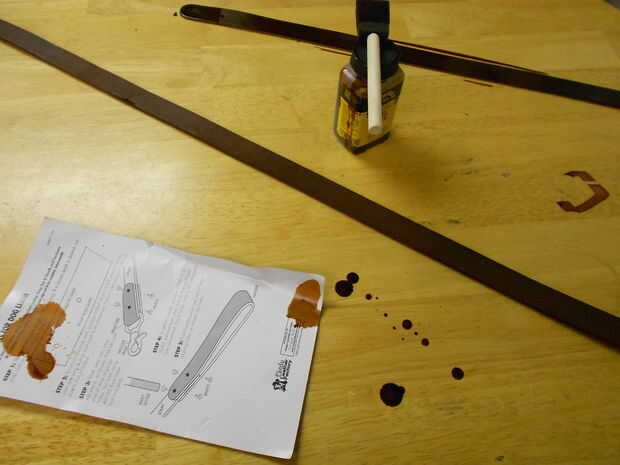 El cuero en la parte delantera se ha permitido que seque durante la noche, mientras que el cuero en la parte posterior tenía una capa de tinte aplicado por lo que ha mojado. Puede ver la diferencia.