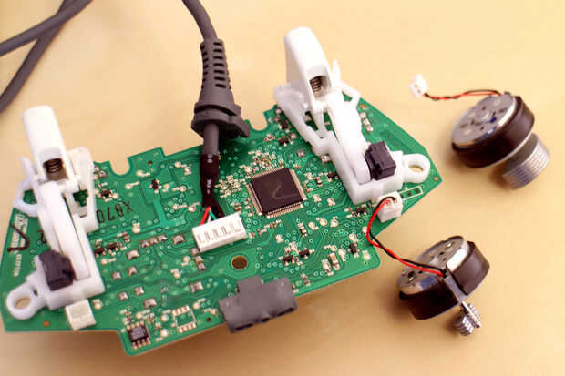 Este controlador tenía 2 motores de vibración. Éstos fueron quitados para hacer espacio para el perro bolsas de residuos, también hicieron el regulador mucho más ligero.