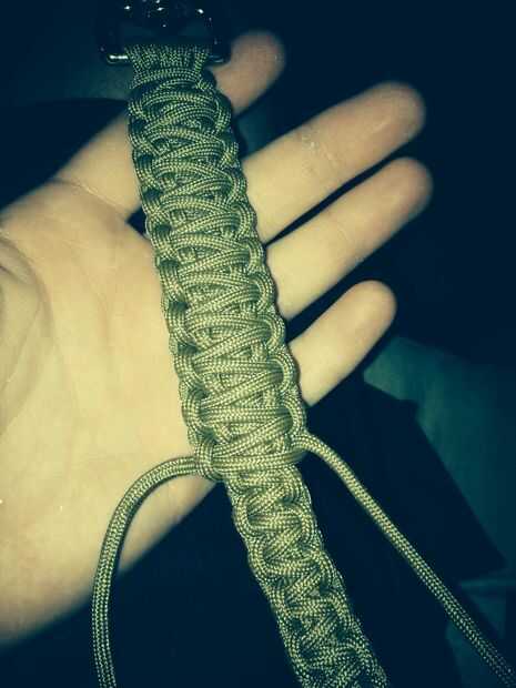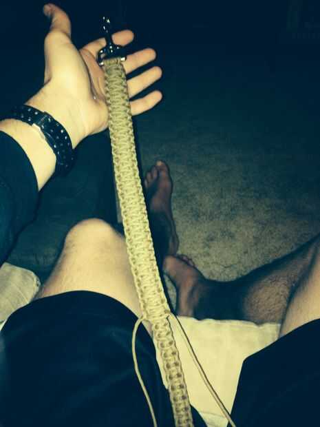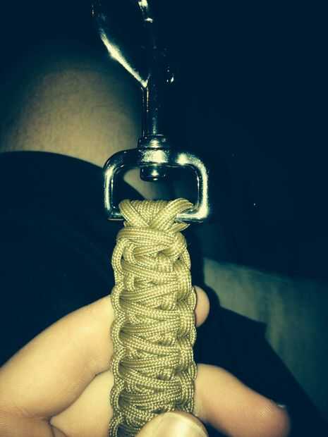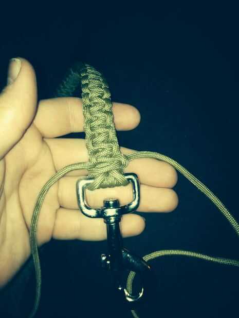 Paracord muy simple perro correa/el plomo de hecho con el nudo de la Cobra. El mango es simplemente un bucle que tejió juntos. Solo hay 2 cables en este sentido, no hay fusión. Creo que hace de un pedazo más fuerte. No muy seguro pero creo cerca de 8