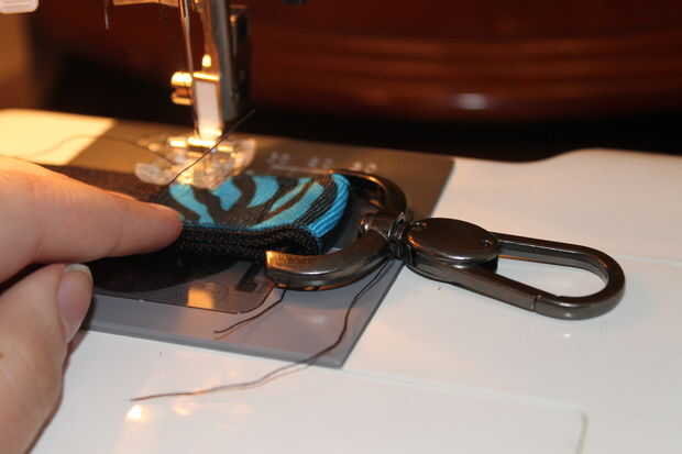 El lado opuesto de la correa es donde debe ir su cierre. Doble la correa a través de la hebilla dejando aproximadamente una pulgada de material en la parte posterior de correa. Como usted hizo con la manija, coser por el borde de la hebilla y coser aproximadamente una pulgada cerca de la orilla. Recuerda cuando termines para recortar hilos sueltos.