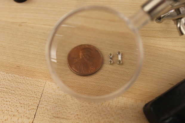 Para unir sus LEDs y resistencias a su correa de perro tienes que adjuntar Chafas a ellos. Esto le permitirá a coser en su circuito con hilo conductor. LEDs de montaje superficial y las resistencias son grandes porque son muy pequeñas, pero esto también les hace muy difícil trabajar con.