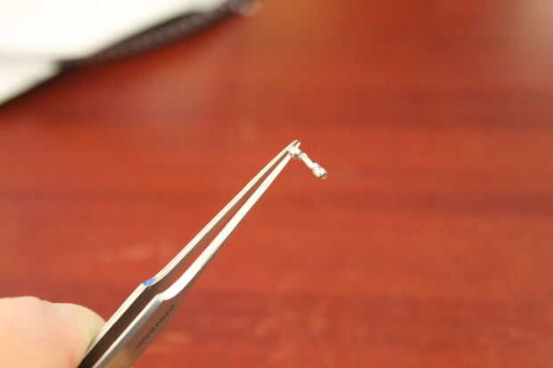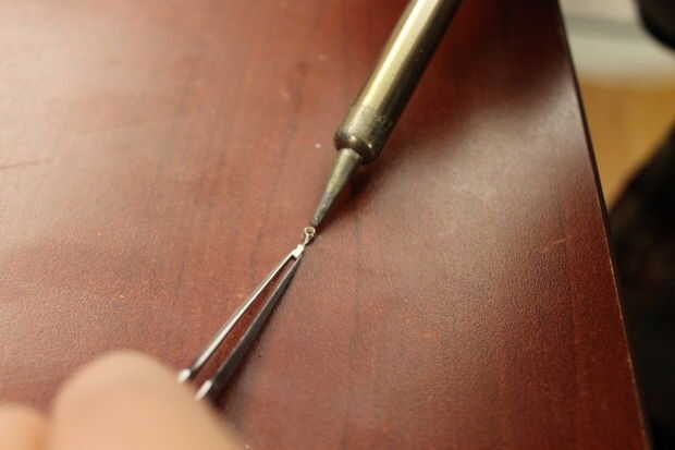 Para empezar, haz alguna soldadura en la punta del soldador te. Recoger un grano de la encrespadura con sus pinzas y poner alguna soldadura en el extremo del grano de la encrespadura. Repita para del segundo talón a prensado, así como por cada terminal de su LED. A continuación, coloque el LED sobre una mesa y levantarse un grano prensado junto a su LED, soldadura lados apuntando uno hacia el otro. Mantenga que llevó todavía con sus pinzas y mantenga el soldador para el grano de la encrespadura. Esto hará que la soldadura en el grano de la encrespadura para calentar lo que permite empujar el grano de la encrespadura en el LED. Repita para el segundo lado. Puede soldar las resistencias usando este método también.