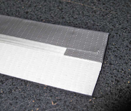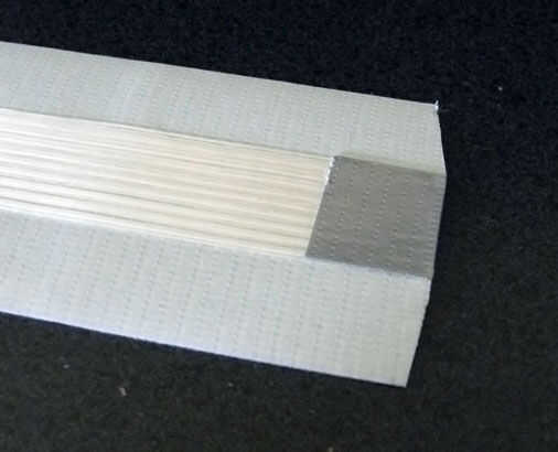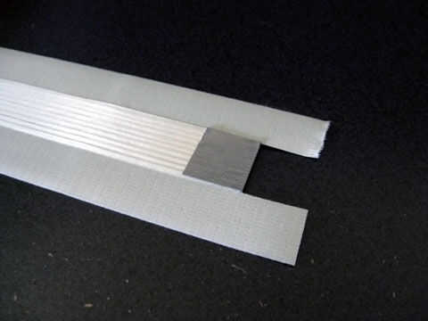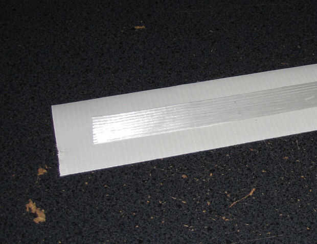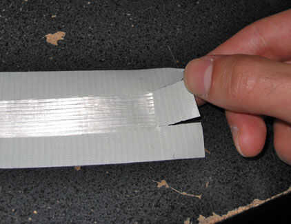 Ahora corte algunas ranuras para que se puede doblar el extremo de la cinta del conducto en sobre el extremo de la cinta de fleje. Entonces usted recorte extra y doble los lados largos de la cinta americana, uno sobre el otro. Asegúrese de recortar cualquier fibras colgando hacia fuera, por lo que la cinta no fray.