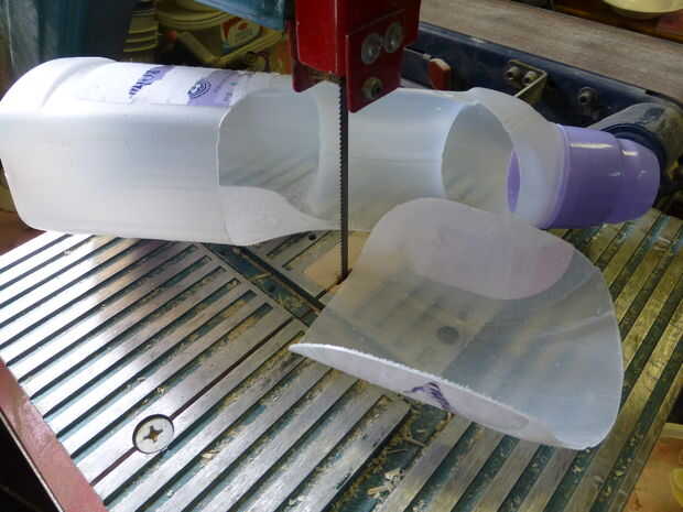 Corte una abertura en el lado de la botella como se muestra. Usted puede marcar esto primero con un rotulador si no está seguro de la posición.