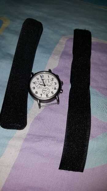 Para la correa de mi reloj favorito rompió... mucho tiempo atrás. De alguna manera no era fácil conseguir un reemplazo que el estilo del reloj. Así que hice mi propio, fácil y rápido y estoy contento con el resultado.Esta solución es muy fácil, barat