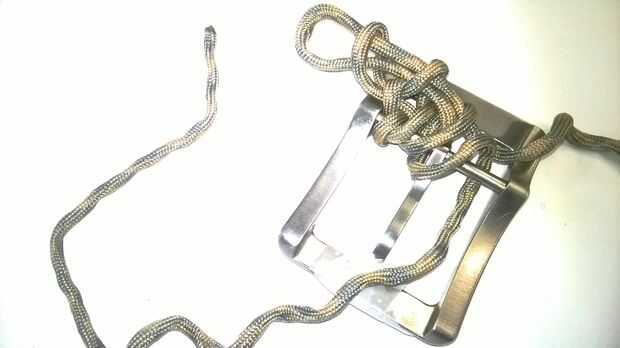 Un futher, en tercer lugar, girar por el corto de pie parte alrededor de la hebilla y tire un lazo en la parte de trabajo a terminaron (primera foto). Entonces pasar a través de otro lazo de la parte de trabajo, apretar y desenroscarlo (segunda foto).
