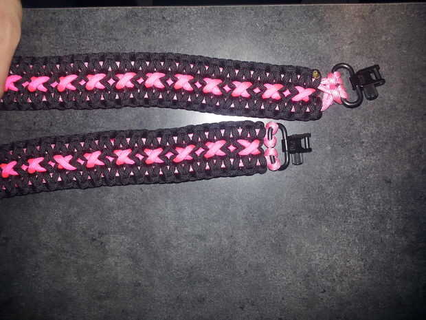 se trata de una correa de perro de 4 pies ish pararcord. se extiende algunos así que si quieres un rígido que le dirá cómo un poco más adelante. Esto también tiene varios colores que no muestro cómo conectar distintas hebras. Recomiendo usar un color