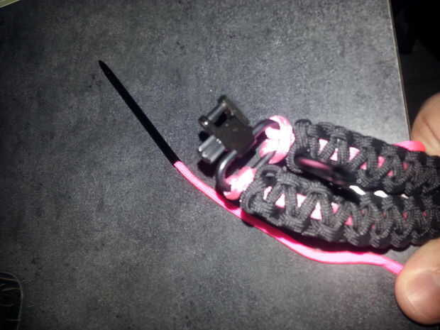 se trata de una correa de perro de 4 pies ish pararcord. se extiende algunos así que si quieres un rígido que le dirá cómo un poco más adelante. Esto también tiene varios colores que no muestro cómo conectar distintas hebras. Recomiendo usar un color