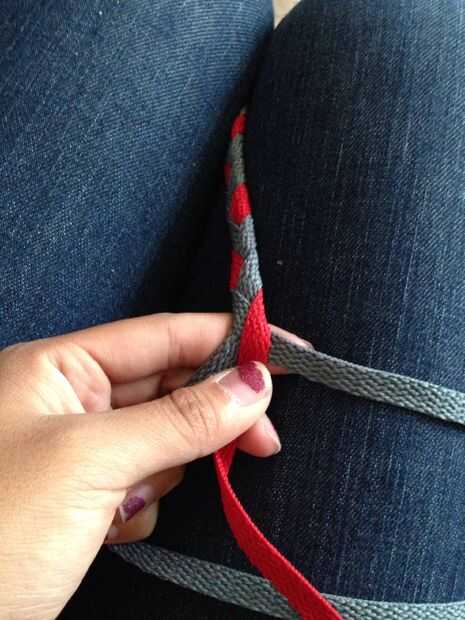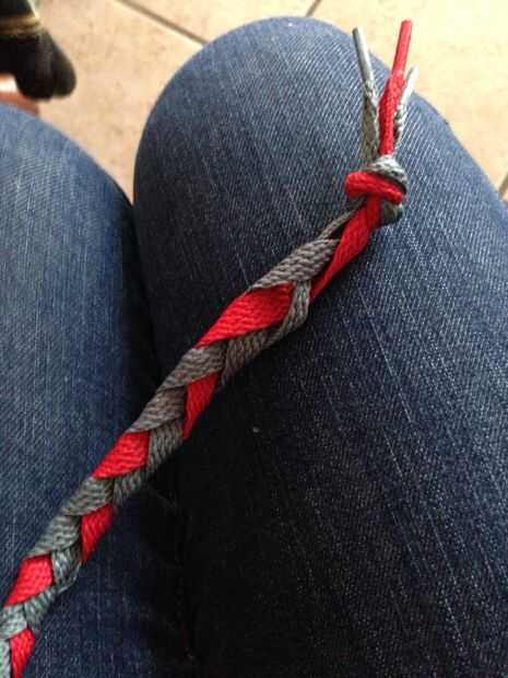 dependiendo de cuántos cordones tiene, deberá ajustar su trenza en un trenzado de 4 hilos, trenza de 5 hebras y así sucesivamente. Hay muchos tutoriales para esto en línea, así que buscando en Google!