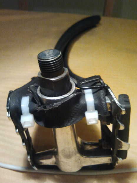4) correa abajo firmemente contra el pedal con ataduras de cremallera