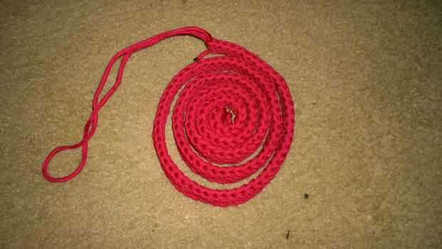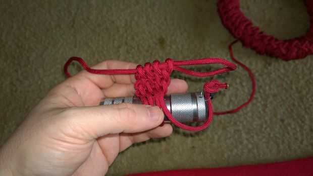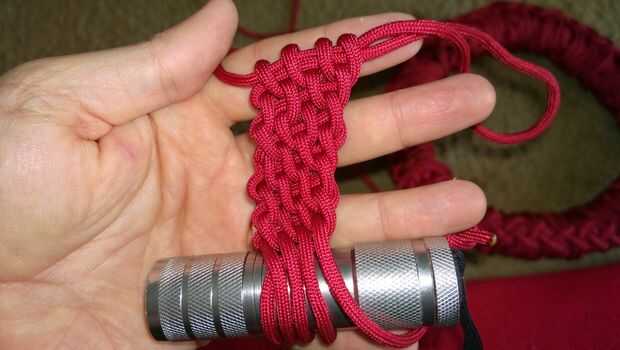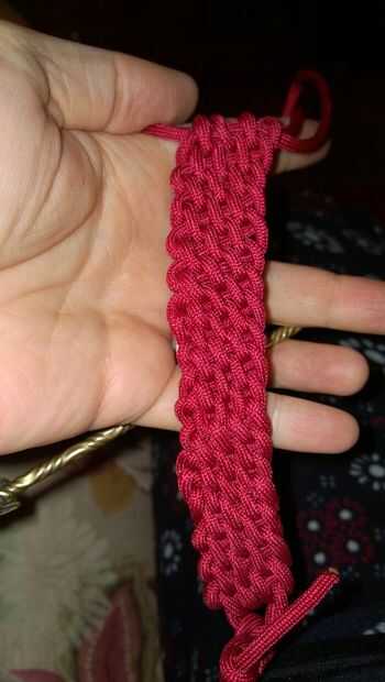 He encontrado que una proporción de 1 pulgada de la trenza terminada era cerca de 6 pies o menos de paracord utilizado. Y es importante recordar que se trata de una trenza continua, por lo que se puede lograr tanto como desee, sin comprometer la integridad del resto de la correa.