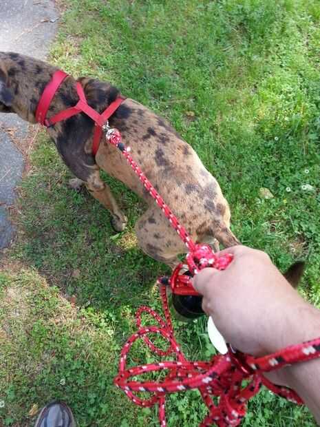 Permítame presentarle la situación y cómo surgió mi solución. Tengo 2 años de edad, 60 libras, mezcla de Catahoula/Lab (tal vez algunos pit???). Es músculo magro. Le encanta dar largos paseos. Estoy pensando en llevarlo en excursiones de senderismo. Y es mi mejor amigo.