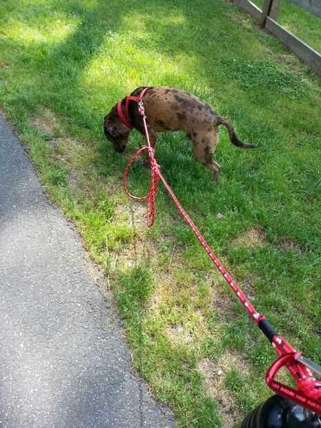 Correas para la mayoría no son lo suficientemente versátiles como para mi gusto. Son cortos y robusto, o retráctil y frágil. Pocos le dan opciones sobre cómo hacer o incluso para pegarlas (Tether) cuando sea necesario. Cuando estás en el camino, usted necesita opciones. MONTÓN de opciones. Hay veces que quiero que tienen línea extra para explorar. Hay veces que necesito mantenerlos cerca. A veces necesita ser manos libres y atarlos a su cintura. O necesita atarlos a un árbol/poste mientras tomando un descanso o hacer el campamento para la noche. En serio, podría pasar más $100 en un surtido de correas diferentes para cada tarea (retráctil/extensible, cintura, lazo hacia fuera, control...). He construido este prototipo de trabajo que se encarga de todas esas necesidades y entonces algunos, por menos de $10 valor de materiales!