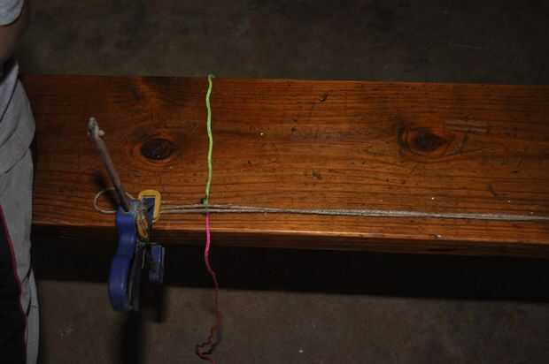 Sujete el hilo o correa de longitud paracord para superficie plana.