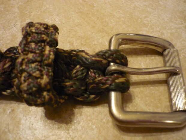 Me doy cuenta de otras personas han hecho estas bandas de estilo aquí en Instructables, pero quería hacer mi propia versión. Tenía una vieja correa de cuero que estaba lista para la basura, que es donde tengo la hebilla. Até un normal sinnet portugués con un extremo atado en la hebilla y el otro extremo me arrancaron los extremos por el lazo y usa un encendedor para derretir en el lugar (se trata de cuerda de nylon). Hice la correa aproximadamente 42 pulgadas de largo, que tomó cerca de 25 pies de cuerda para atar (creo). Tan en forma se trata de un cinturón de supervivencia porque tuvo mucho de la cuerda. Tenía dos cuerdas de diferente grosor que eran del mismo color de camuflaje, así que es como hice el soporte de cinturón lazo. Simplemente tira de la cuerda de calibre más pequeño a través de ambos lados de la correa y había atado otro sinnet Portugués, acabado de la misma manera que el cinturón (con un mechero). Las mercancías de este cinturón de casi todos los días y conseguir cumplidos todo el tiempo (yo he sido waring lo hace ya varios meses así su dura demasiado). Si alguien quiere saber que encontró la cuerda en walmart en la sección de Marina, probablemente cuesta unos 8 dólares para hacer. Lo siento no mostrar cómo atar este nudo (es un nudo de arrecife atado en un lazo) pero usted puede encontrar un gran video sobre cómo atar aquí. Espero que otros hacen su propia versión de esta banda impresionante porque todo lo que haces es manera más fría que cualquier cosa que usted puede comprar.
