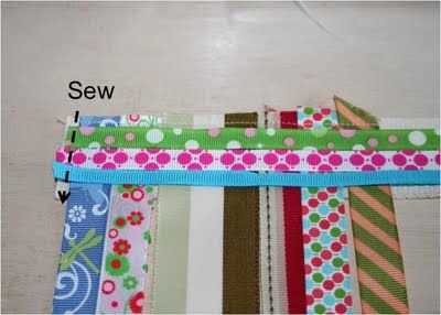 Lugar perpendicular a las cintas que solo cosido en cintas de 2 a 3 (me refiero a éstos como sus cintas "largos"). Coser las cintas en la cinta de algodón.