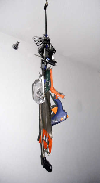 Esta correa es colgar algunas de mis herramientas de cable utilizados por encima de mi área de trabajo, como el cautín y pistola de pegamento. También es capaz de colgar cables de extensión, gafas de seguridad y casi cualquier cosa con una manija o gancho.