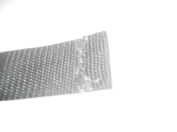Vas a querer cortar una longitud de material. Una vez doble y caliente pegamento alrededor de un cuarto de pulgada de la tela debajo de sí mismo para reforzar la correa. En este punto perforé un agujero de arranque para el perno que pasar. Si pone a la tela sobre un trozo de madera de desecho que hace mucho más fácil.
