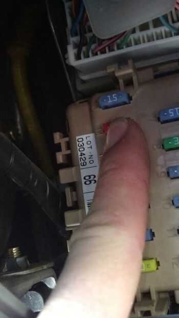 En la esquina superior izquierda hay un fusible de 15 amperios, que es el fusible de la bomba de combustible. Quite el fusible y tratar de arrancar el automóvil. Esto aliviará la presión de combustible, así que cuando usted tira de la línea de combustible no rociar gas en la cara. Habrá algo de combustible que va gotear hacia fuera.