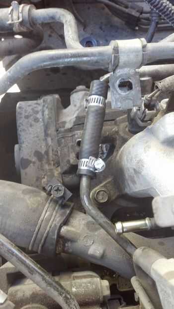 Flexión la línea de combustible largo metal hacia fuera un poco y cubrir con un lubricante. Deslice la línea de combustible en la línea de combustible de metal y más allá de la lengüeta, hasta puedes poner la nueva línea de combustible en el extremo corto de 90. Deslice las abrazaderas de manguera en la línea de combustible y posición para el montaje final.