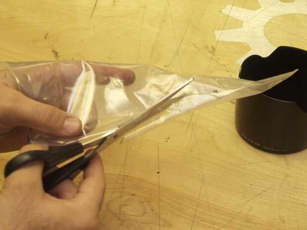 Corte un orificio con las tijeras, pero ligeramente más pequeño que sus marcas. Tendrá que quedar algo ceñidas alrededor de la campana.