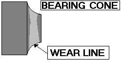 Un ideal es que usted debe ver una línea de desgaste relativamente parejo en los conos que se ve como una línea de pulido que se centra en la curvatura de la forma cónica del cono. Esto debe combinarse con la misma impresión en el interior de la taza de rodamiento (carrera) en el centro.