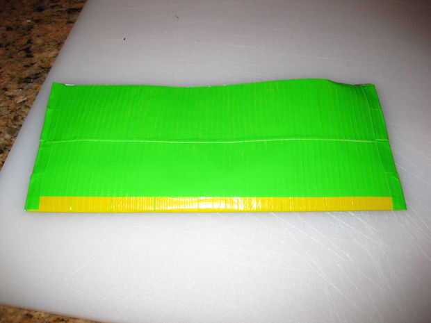 hacer una billetera de cinta del conducto es fácil!Lo que usted necesita:Cinta adhesiva de cualquier tipo, tijeras y un billete de un dólar.Paso 1: y luego repetir asegurándose de que son del mismo tamañoPaso 2: Establecer una paz larga de cinta para