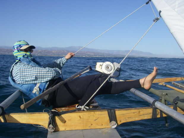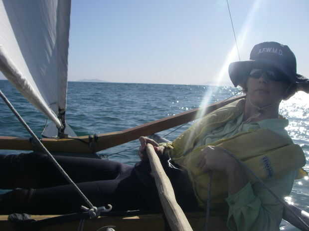 Nos turnamos vela. No tenemos que negociar posiciones para hacerlo gracias a la caña del timón largo.