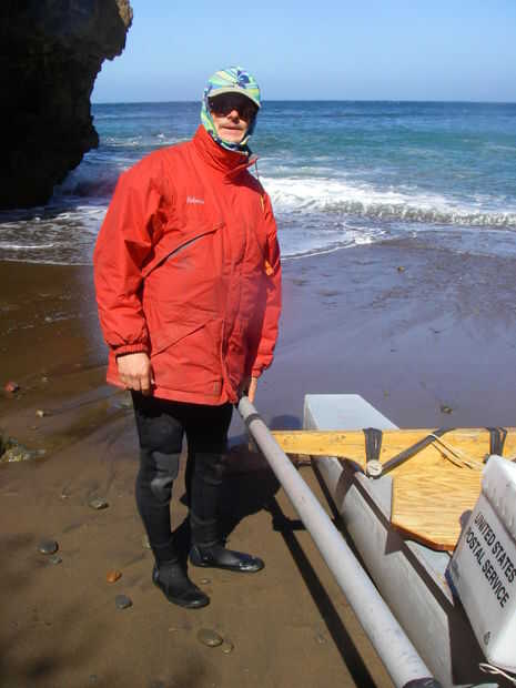 Menos de una milla de la cueva le pregunté K cómo se sentiría si hemos dado vuelta alrededor. Todas las ondas tenían crestas blancas, y el viento estaba aullando. Al ritmo de que las olas fueron creciendo, ¿Quién sabía cuánto podría obtener? No quería arriesgar un vuelco. Dijo que estaría bien, pero no quiero ver la cueva? Hemos hablado. Resulta que ambos pensamos que el otro tenía un corazón a la vista de la cueva. Fueron aliviados. La orza se levantó y dio vuelta la canoa a correr viento a favor. Cambiamos nosotros mismos popa para levantar la nariz al surf. Muy rápido navegando en popa, navegando por las olas. Pero mucho más tranquilo. Nuestra velocidad conseguido resta de la velocidad del viento en vez de añadido a él. Este video da la idea general, pero la cámara reduce las ondas mucho.