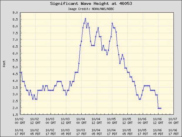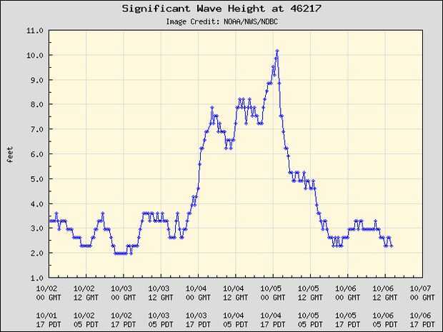 Aquí están los gráficos de "altura representativa de ola" [http://www.ndbc.noaa.gov/station_page.php?station=46217 cortesía de NOAA]