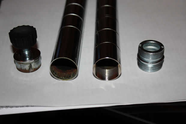 El único inconveniente fue que los niples y tapones cada costado un par de dólares e incluso si compré pezones más largos y córtalos por la mitad (sólo necesitaba los extremos roscados en un lado) todavía llegó a ser caro. Entonces miré las columnas originales y me golpeó. DOH!