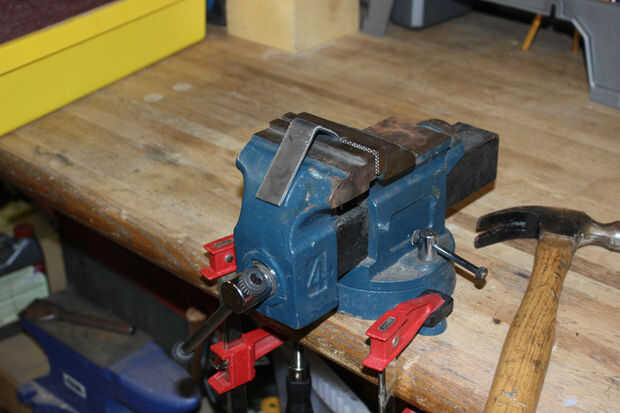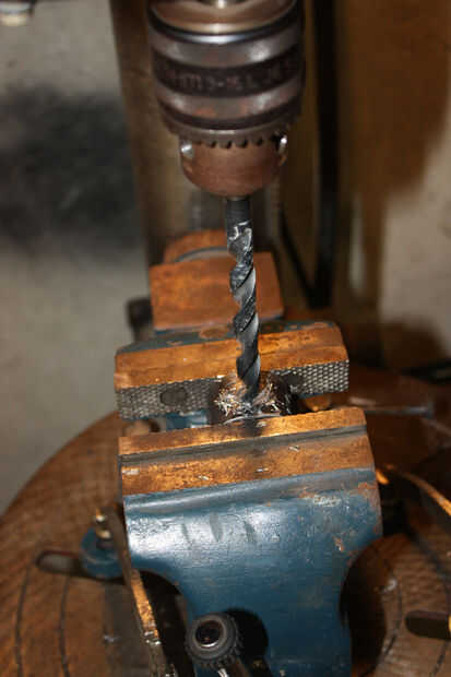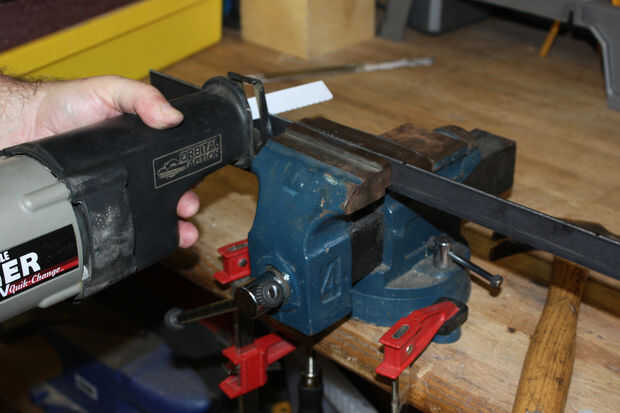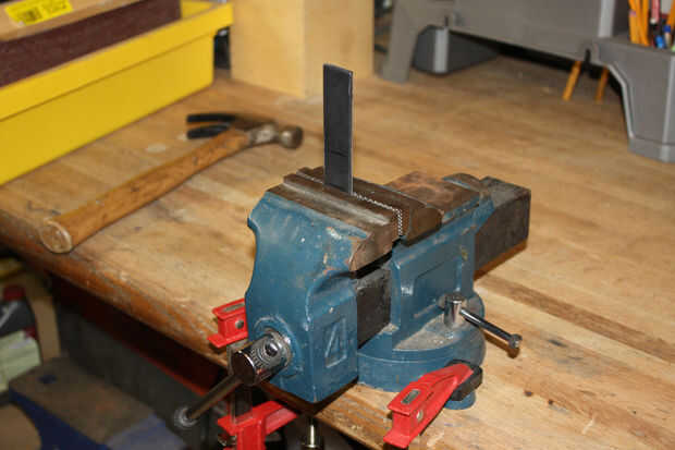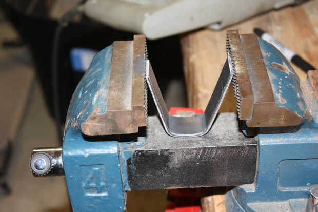 Compré dos de 1 "x 1/8"x 72"planas de barras de acero. Estos fueron cortados en 6" piezas y doblado en un cuadrado de"U"forma, con un trabajo vicio del metal y un martillo, haciendo que un yugo. Luego fueron perforados para el perno superior y Cruz-perforados para sostener los tubos. Tenga en cuenta que la perforación fue hecha después de doblar las barras, de lo contrario los bares doble donde se perforaron los agujeros, como era más débil que...