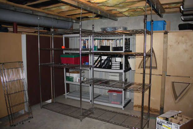 Que había comprado tres estanterías nuevos, idénticos a otros que ya utilizaba en otros lugares en el sótano. Mi plan es agregar al sistema cuando tengo oportunidad.