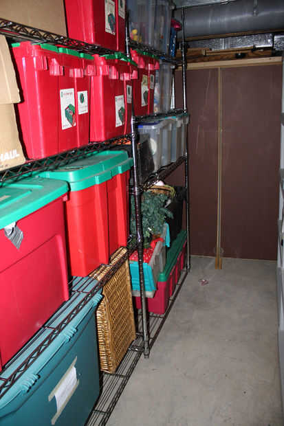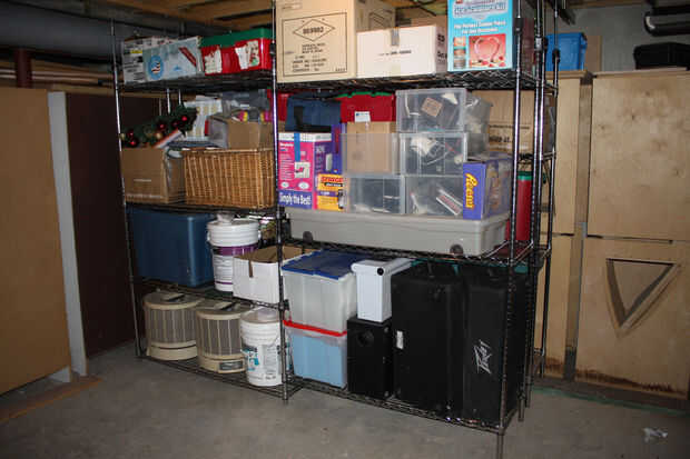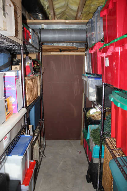 En la fotografía final, tomada justo después de la primera bandeja, puso a cuatro de los estantes al lado, junto a un estante que ya estaba instalado, para mostrar cuánto espacio llevaría. Es fácil ver que hay mucho espacio para tener hasta cinco estantes total en este espacio relativamente pequeño, que le da total de 420 pies cúbicos de espacio de almacenamiento (8'x 7' x 1.5 ' x 5).