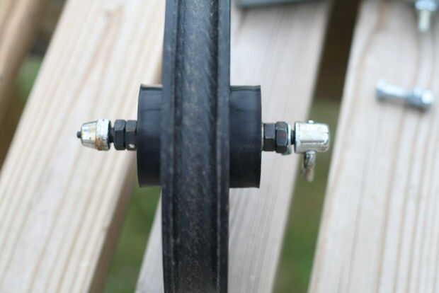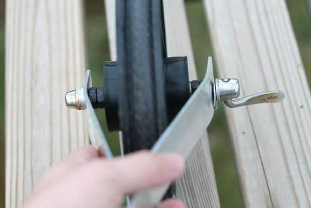 (Si esto no hubiera sido una liberación rápida rueda entonces habría solo quitamos la tuerca de cada lado)