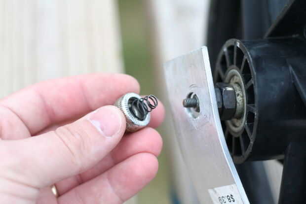 Quitar el poste del pincho del centro del eje de la rueda. (imágenes 1-3)