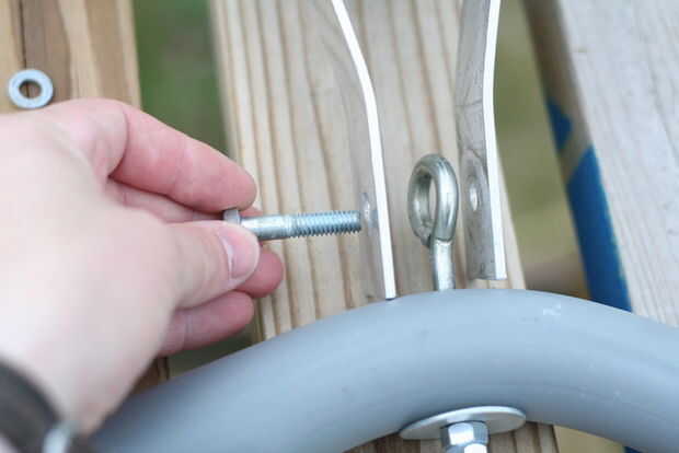 Coloque el perno de 5/16" a través del agujero, ojal y otro agujero. Coloque la arandela y las tuercas de ambos en el extremo y apriete bien. (imagen 3)
