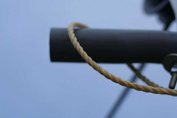 Trabajar el nudo en la soga por lo que es apretado lo suficiente puede no quitar la cuerda sobre el extremo del mango. (imagen 6)