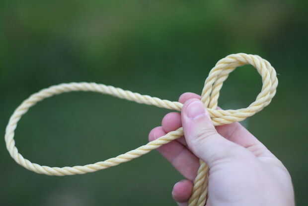 Doble hacia arriba la cuerda con un lazo en el extremo y doblar sobre sí mismo. (imagen 2)