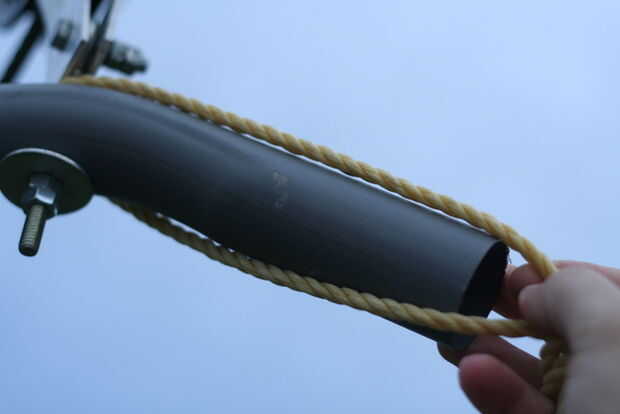 Lugar que Dogal sobre un extremo del tubo tire en el perno de ojo y poner el lazo en el otro extremo de la tubería. (imágenes 4 y 5)