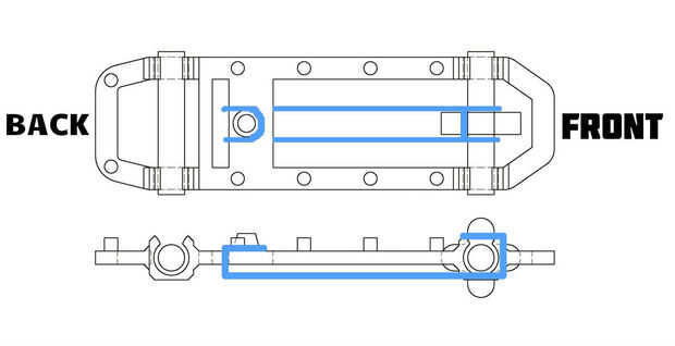 Tener en cuenta, el equipo debe estar en el eje delantero de la estructura, la parte con el borde plano en mi modelo.