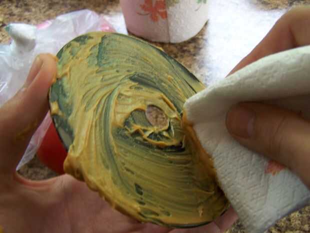 Ahora, toma la mantequilla de maní y empezar a fregar en el CD usando patrones pequeños, circulares. Es torpe, lo sé, pero al final, todo funciona.