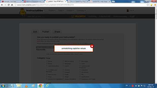 Tengo un error de "Valores coincidentes de Captcha" mientras que traté de publicar una nueva instructable.