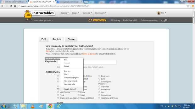 Paso 1: Fijar la reCAPTCHA - herramienta de uso Inspeccionar elemento