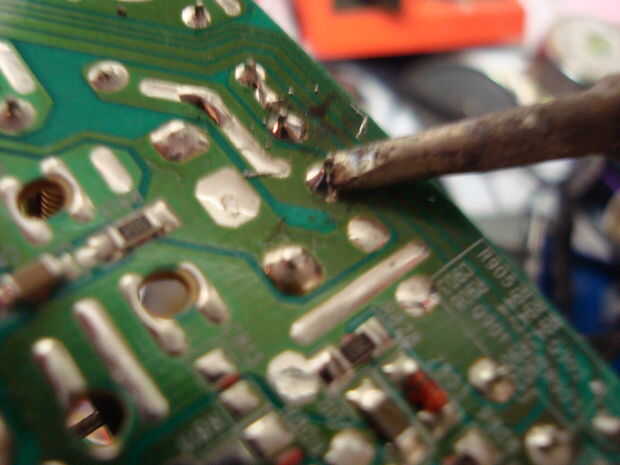 Ahora que su condensador vino en, o si acaba de pasar a tener uno en la acción, necesita soldar en la placa de circuito. Sacarlo del embalaje, colóquela en los orificios donde el condensador mal, hacía que la polaridad es correcta, voltee la placa y soldar la nueva PAC en el lugar.