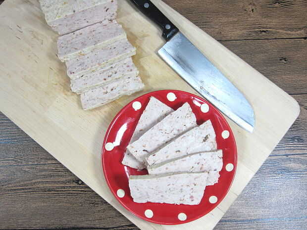Spam estará listo al día siguiente. Cortar en rodajas y guardar en el congelador. Consumir en 2 meses.